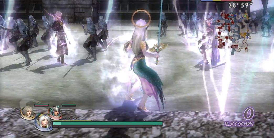 首先是同时作战指令,不同于初代只有合体无双才能三人同时攻击的设定,大蛇2允许你随时释放队友出来助阵,当然这样的话队友就不能像平时待机一样逐渐恢复体力。另外如果角色头像下面的蓝色能量槽全满,就可以发动《真合体技》(注意骑马也可以发动),这种合体技不但无敌时间极长且威力极大,并且增加稀有宝石掉落的几率。