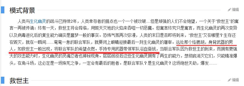 首先,在救世主模式的剧情背景中,有这么一段话“远处那个络腮胡,身背武器的男人,如救世主一般出现,将联合军队的希望点燃。”,这里就说明了一个事情,就是救世主就是一个人,而非一个部队的,毕竟如果是一支部队的话,那就意味着这里的描述并非是男人、而一群人。