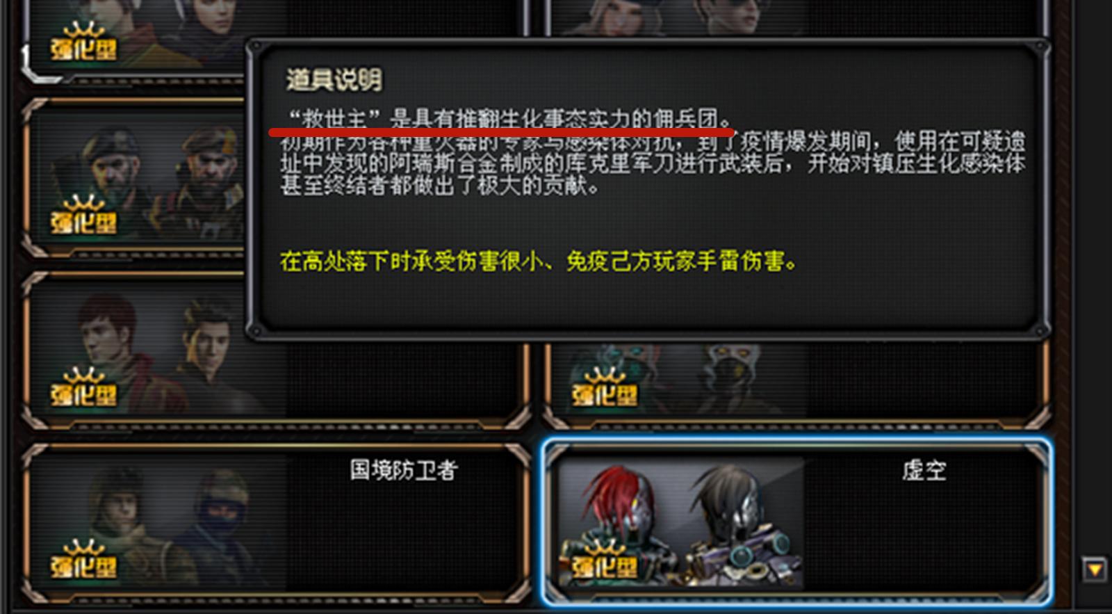 而之所以造成了救世主被很多玩家误认为是部队的原因,很大程度上是一个国服剧情介绍中的一段话“救世主是具有推翻生化事态实力的佣兵团”,这番话其实有两种含义,一方面是说明救世主是一支有实力的部队,但另外一方面却也说明了救世主是来自于一个有着超强实力的佣兵团,