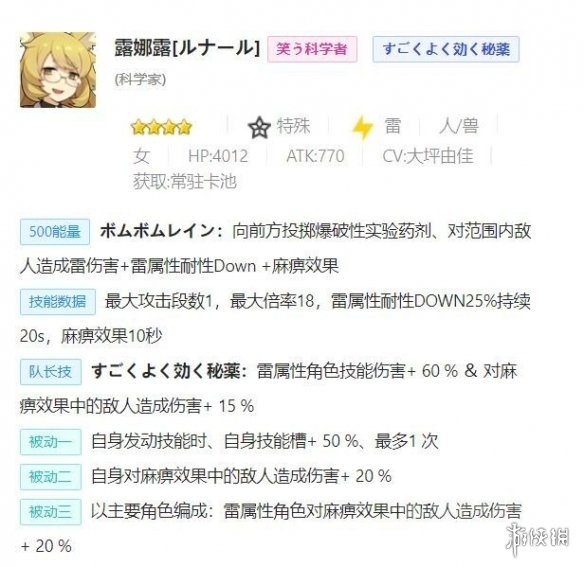 雷队常用,也可以跨属作为麻痹手出场,但是技能判定脑溢血导致扣分。