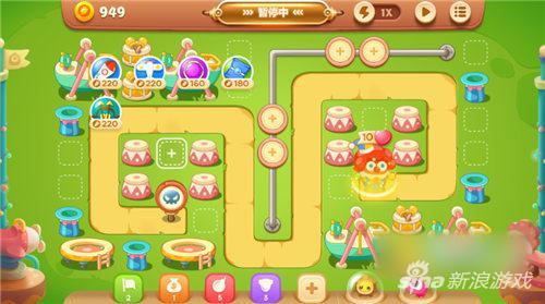 多重箭、魔法球、玩具飞机的顶级炮塔各1座能让阿波在短时间内迅速清理完地图左边所有的障碍物。有了更多炮位的阿波信心满满,再多的怪兽也用不怕哟!