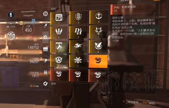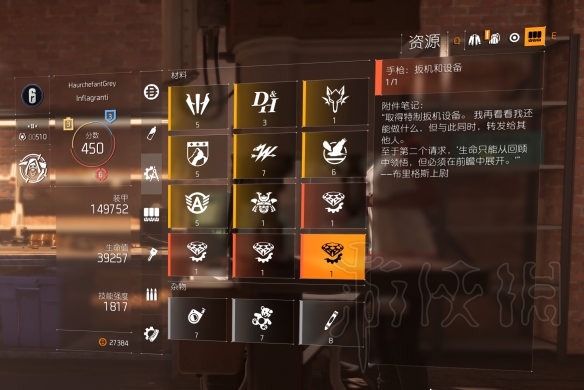 4.根据准心和导轨上的署名去打航天局总部,获得握把和标签以及设计图: