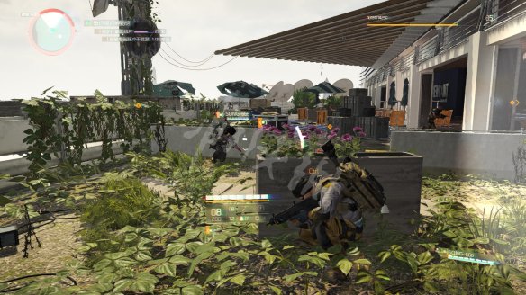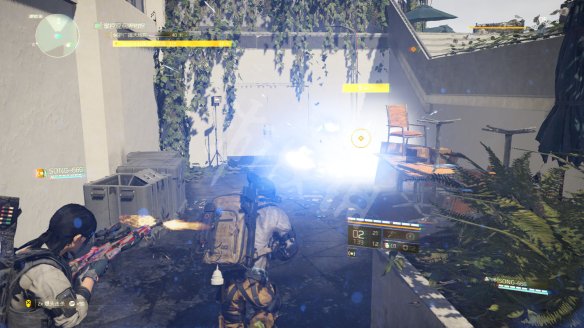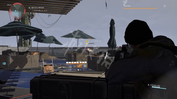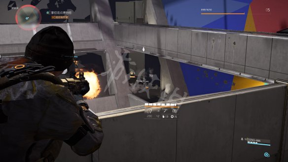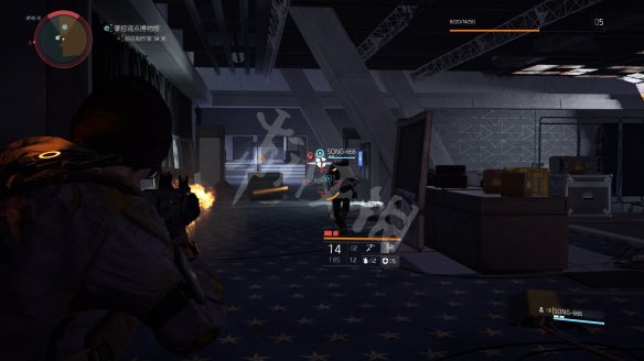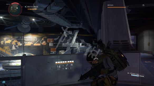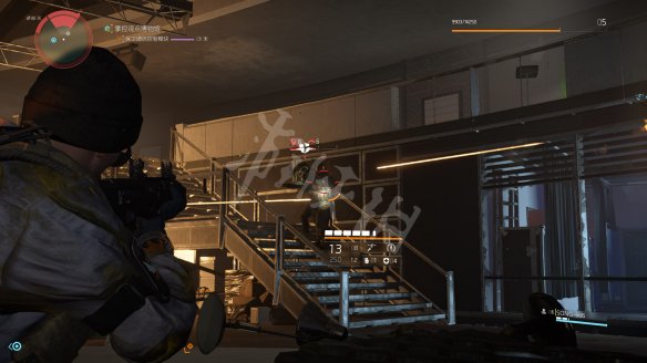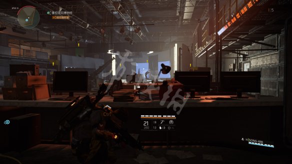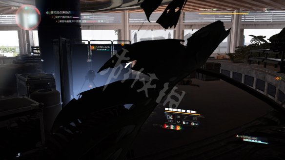 之后乘坐电梯前往屋顶,这里的战斗有些难度。第一步是要在指定时间内摧毁3个电磁脉冲干扰器,电磁脉冲干扰器存在情况下玩家不能使用技能而且画面会变的略微模糊。3个电磁脉冲干扰器都会以任务目标标识,第一个在屋顶入口附近。