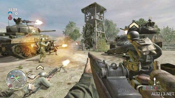 “今天我们要去执行一项秘密任务,那就是去找一些咖啡和甜甜圈来,”队长说道。“问题是,那群德国鬼子把咖啡和甜甜圈都吃光喝净了。”这听起来有些不太妙,看起来是要去从纳粹部队那里抢补给品。在后面的许多《使命召唤》游戏中,玩家都得到了详细的任务指示和战术经历,只要按部就班去执行就可以了。而在COD3任务简短的开场白之后,就是一系列的劲爆的战争场面。炮击、干坦克、开坦克、潜入密道以及那让人费解的成吨的死掉的纳粹兵,这一切的一切就成为了整部战役的主题。