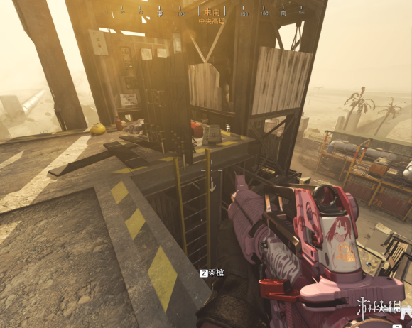 炼油厂,盾牌要这么摆,注意露出到梯子上一小节,感染体爬上来会自动掉下去,你只管射通风管道的就行了。