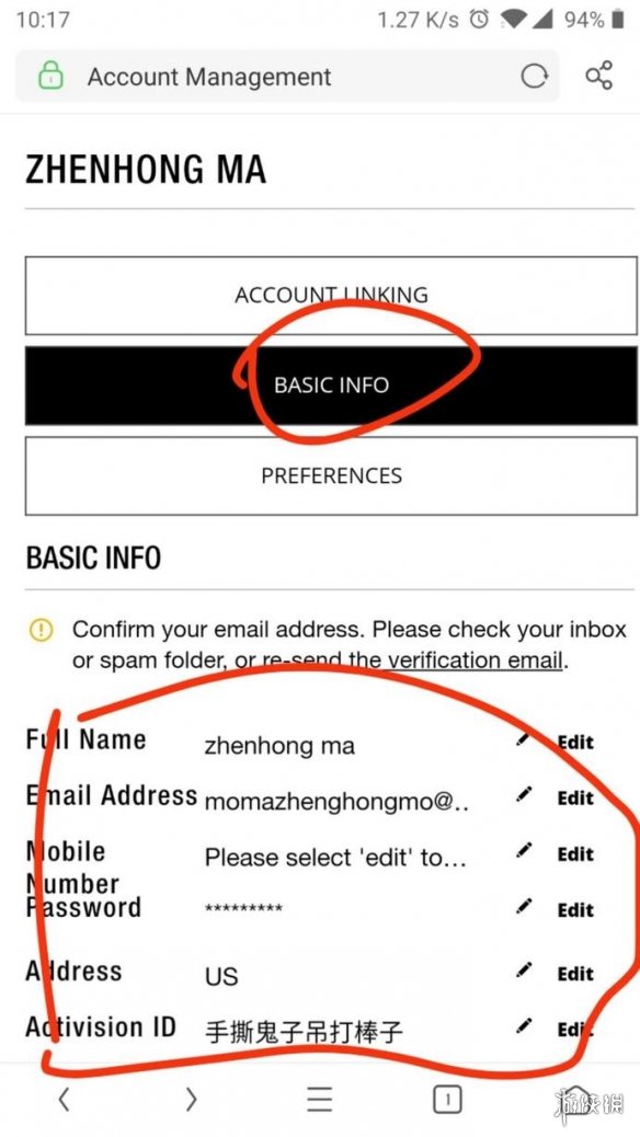 4、在接下来的页面中选择basic info,然后下面带铅笔图标的地方就可以改啦(该的时候要输入密码验证)。
