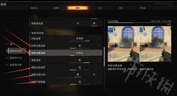 2、材料品质就是贴图品质,你看地图模不模糊主要是这个;