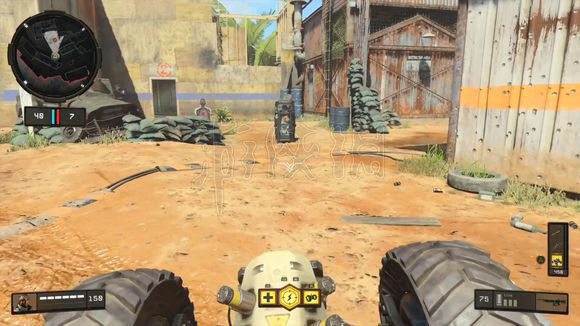 加上高爆配件的RPG打不带防曝服的盾兵可以这样打他侧方地面解决他。