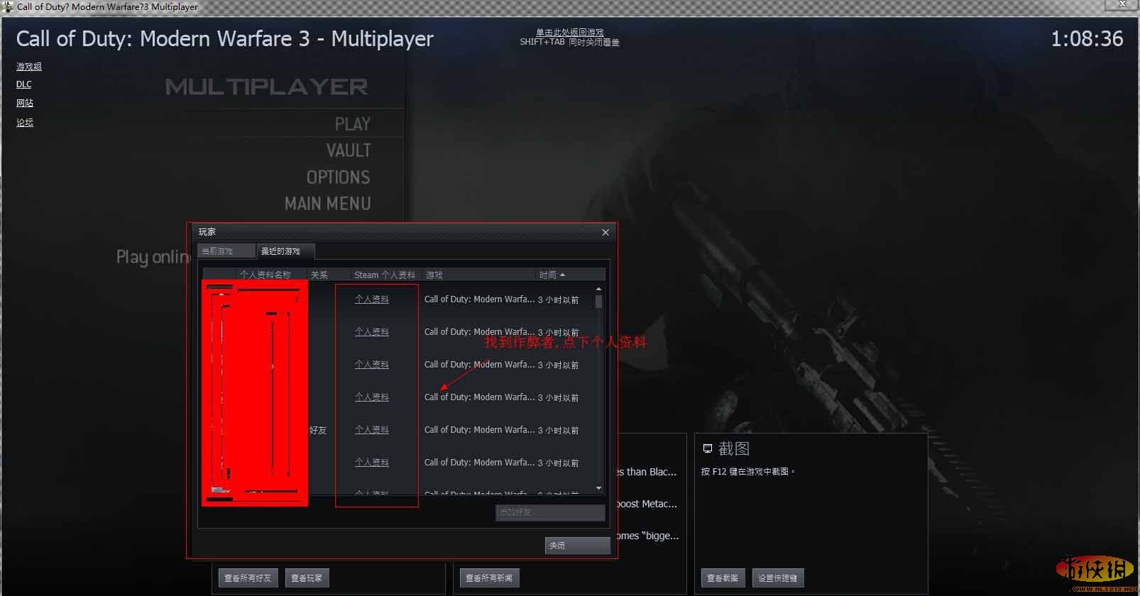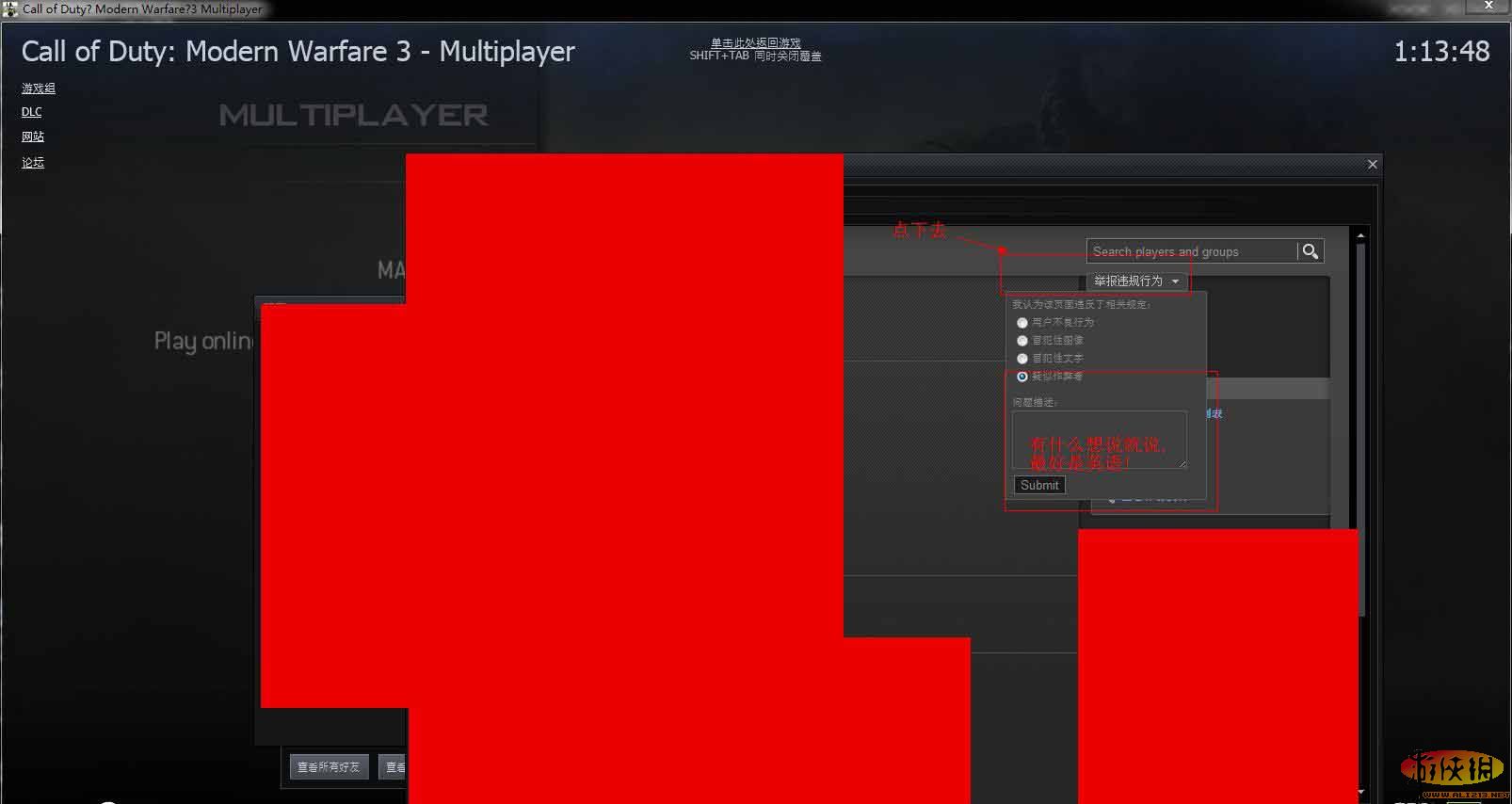 最近MW3联机作弊的越来越多,有的人不知道怎么举报!其实举报很简单的!