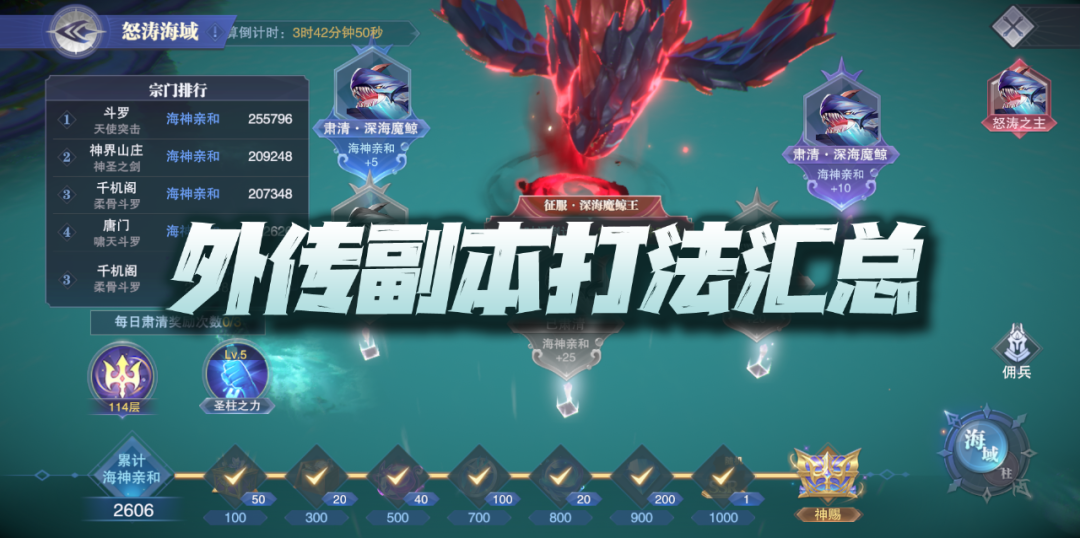 最后我们看到的是外传活动【风云激荡】(此活动大概会在开区后的210天左右开启),此次活动的形势和之前的七个外传副本也是相差巨大,其第一次将宗门的因素纳入了外传副本的玩法当中,同时也在保留基础的打伤害模式之下新增了获取海神亲和来作为最终评分的标准,另外最终的宗门排名和个人排名都会有奖励,这也是游戏外传副本之路上的破天之创。