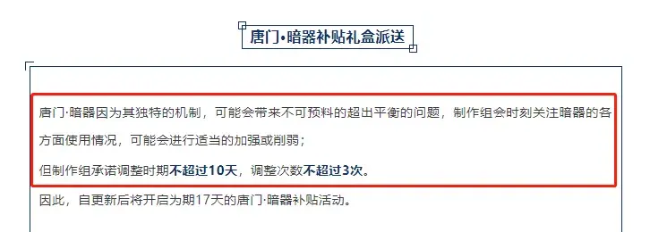 昨天维一收到了大量粉丝的私信,要求给大家迅速的出一期有关于唐门唐三的玩法全解,其实说实话维一觉得目前出唐门唐三的全解攻略也不是不行,但是在官方正式更新暗器大版本前的公告中曾有这么一段: