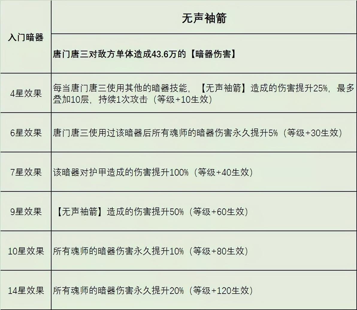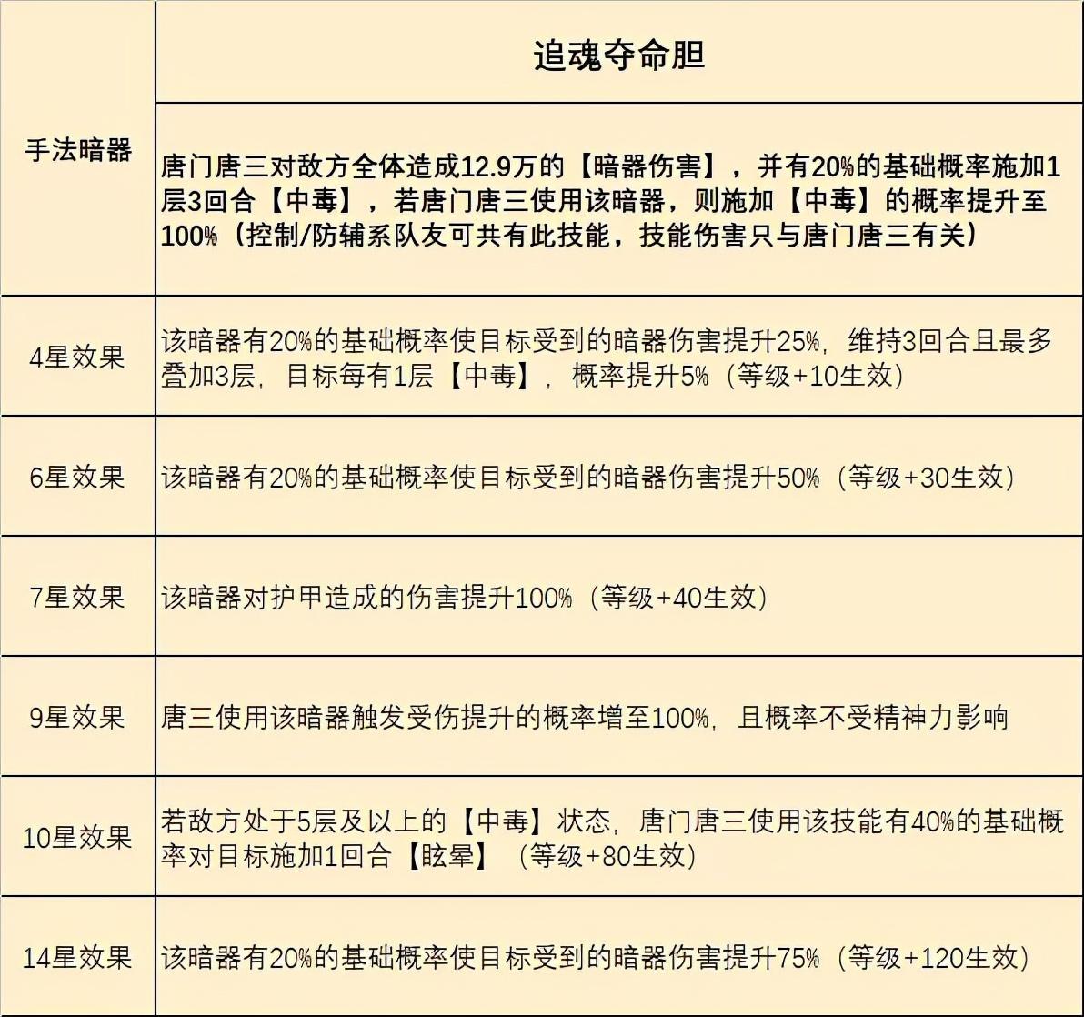 大家如果想用暗三来打悬赏,上面维一的介绍大家可以关注一下,虽然没有到达这个门槛也是可以用的,但暗三的伤害也会大打折扣,所以7星暗三+10星【暴雨梨花针】的成本......应该也是不低的,这就是想玩暗器系统的朋友们需要提前考虑好的问题了。