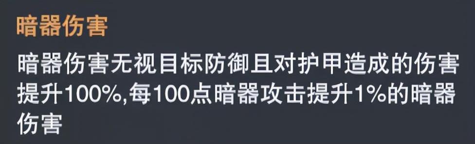 暗器伤害本身可以无视防御,相当于本身就是自带100%破甲状态,另外绝大部分的暗器都会有不低的对护甲的增伤效果,因此使用暗器在未来的PVP当中肯定会有一定的作用,特别对于破解肉队或护盾队可能对有一定的针对性效果