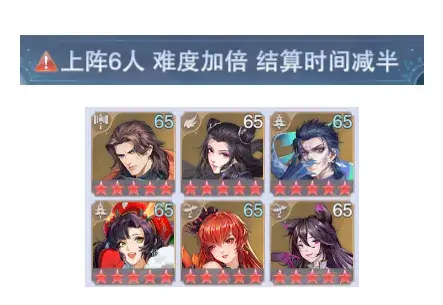 最后提一句,这个副本如果我们只上阵6人则可以享受到击杀boss后结算时间减半的效果,所以如果大家的练度够高,则用上述的6人极限阵容即可,这个阵容也是猫在各种悬赏里的首选阵容。