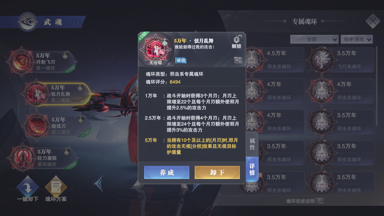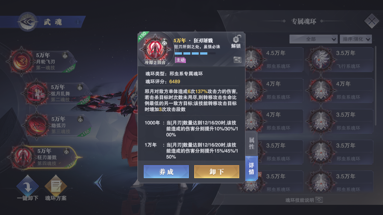 4魂技邪虫系随月刃增加伤害增加,魂技消耗减少,击杀转移后共计爆炸。