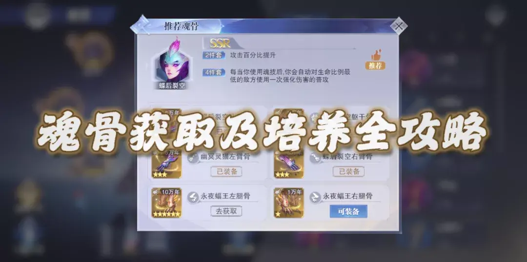 说了这么多心得,希望在魂骨的获取方面能给大家带来一些帮助,接着我们变来看今日攻略的第二部分内容:魂骨的培养。