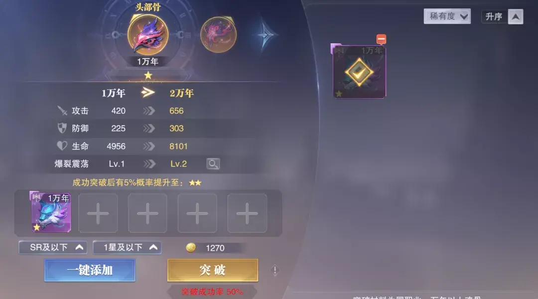 1万年→2万年:2个魂骨材料可达100%成功率