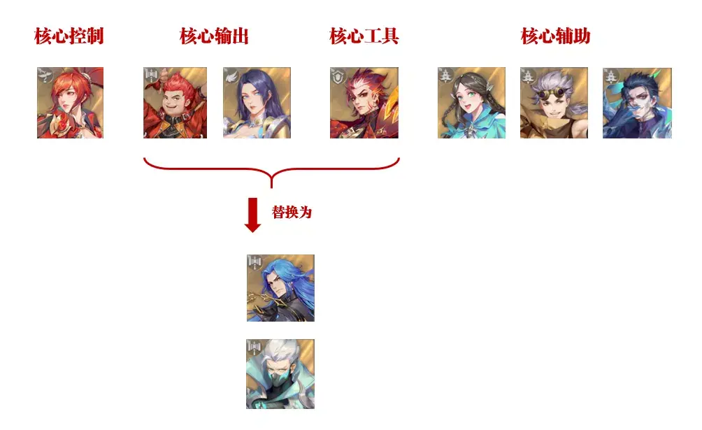 但是部分玩家可能对于柳二龙与焱的辅助能力并不感冒,因此也会将这个灼烧阵容给改成这样: