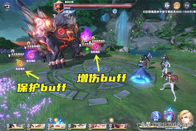戏虫的打法是第一波只用增伤buff,让队伍里的非输出角色去攻击buff球体,将攻击的机会留给输出角色;第二波需要激活保护buff,这样就能轻松抵消掉boss的攻势,如此操作只要两次循环基本上就能击败泰坦巨猿了。如果这样你还会失败,那么问题就出在你的角色阵容上面了,接下来我们再来聊一下阵容的配置。