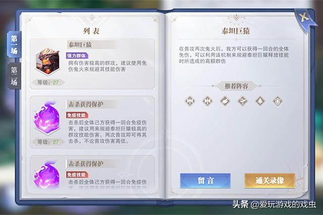 这一关需要经历两次战斗,两次战斗时泰坦之猿的身边都会出现一些增益buff的能量球,这些能量球能够免疫魂技,只能用普通攻击去击破,击破后即可获得相应的保护buff或增伤buff,利用这些增益效果就能战胜泰坦巨猿,这也是这一关玩法的精髓所在,玩家最好采用手动战斗模式。