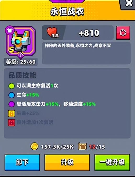 这个铠甲应该是除了永恒战衣外一个很不错的装备了,有小永恒这一说,有一次半血复活的被动。对于萌新玩家就等于多了一次容错的机会。另外还有一个时尚夹克这个装备。被动作用是提升恢复能力,还有打怪回血。永恒战衣除外就选这两个吧。