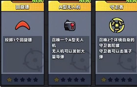 刚开局的时候,地上会有很多经验给我们捡,可以直接升级然后获取你的技能,选择技能也非常关键,比如小编这把刚开局就选择了守卫者这个技能,它发动起来可以在自身周围一直旋转,对周围敌人造成伤害和击退,一直升级进化之后会变成捍卫者,自身周围的轮盘变多还会变成红色的并且伤害提升,最关键的是它可以挡住很多子弹,避免很多的攻击,这是小编认为这个技能是这个关卡最关键的技能之一。