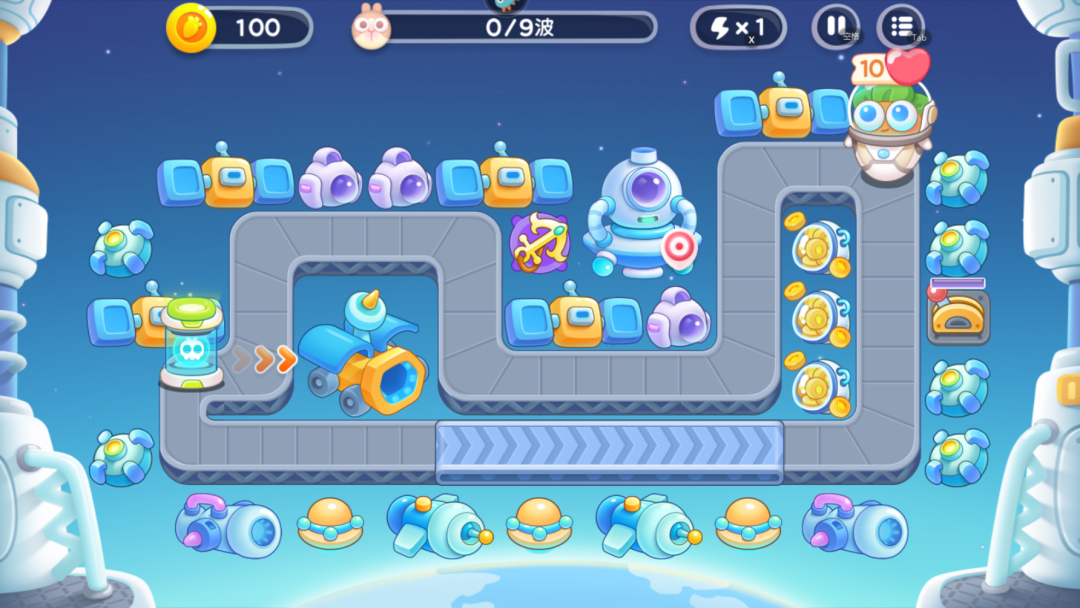 特别注意:建造一些导弹塔,可以用来攻击喷射飞行兔,喷射飞行兔很容易就冲破我们的防线。本关的装甲兔多建造船锚来应对就行。