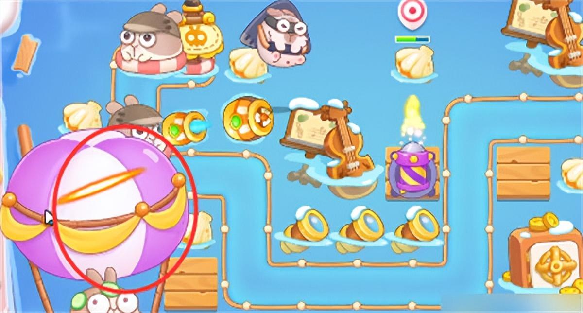2、这一关有热气球兔子来捣乱,我们要赶紧把他划走。