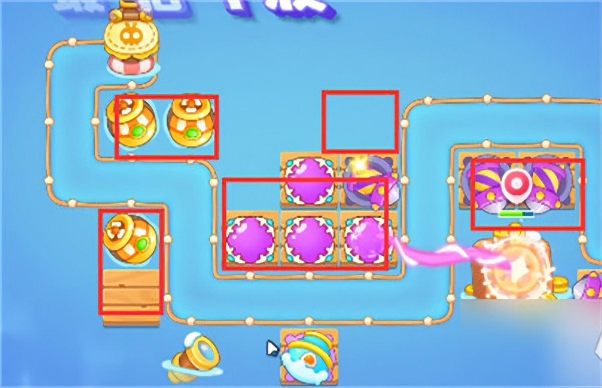 3、这一关可以选择的炮塔不多,鱼雷和电磁塔还是我们第一选择,拐角处也可以放置风扇,后排需要几个烟花防空。