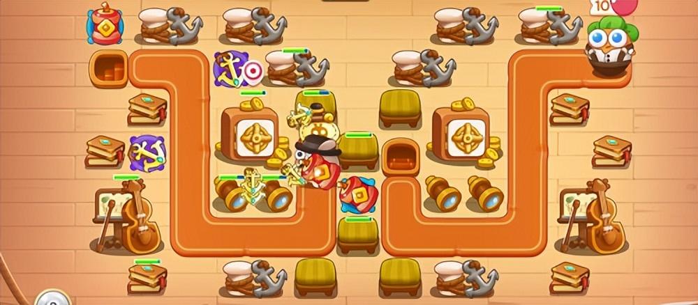3、第二场开局后现在左上角建造一个船锚升级,多的钱把左下角的风扇升级,有钱就建造船锚。