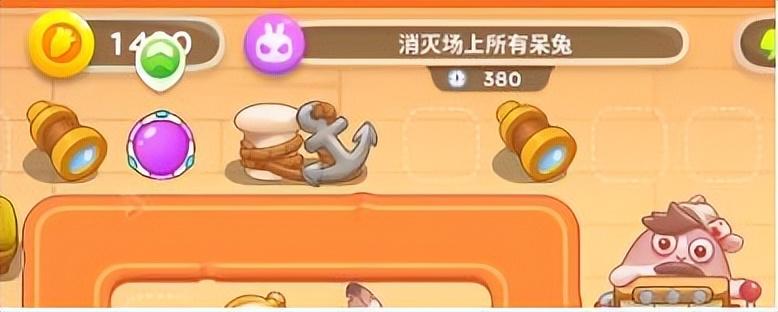 过关要求:消灭场上所有呆兔(320秒),初始金币:1400。