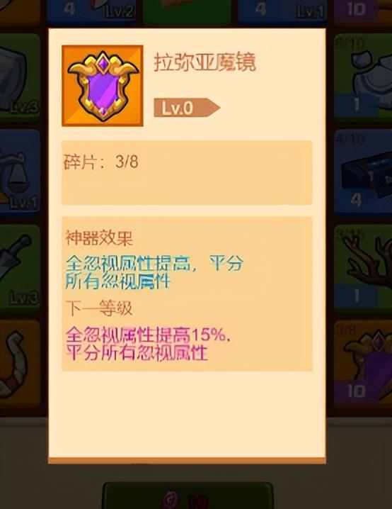 这一件神器名为拉弥亚魔镜,其神器效果为全忽略属性提高,平分所有的忽略属性。小编之前说过有一些高反击闪避的boss非常的难以通关,只有不停的闯关期待它的概率降下来,才有一点几率能通关,而这件神器可以直接让咱们取消这方面的忧虑,起码打boss每一击都闪避或者打一下被反击两三下的场面应该大幅度降低了,这样就使我们大大提高了打赢的几率。