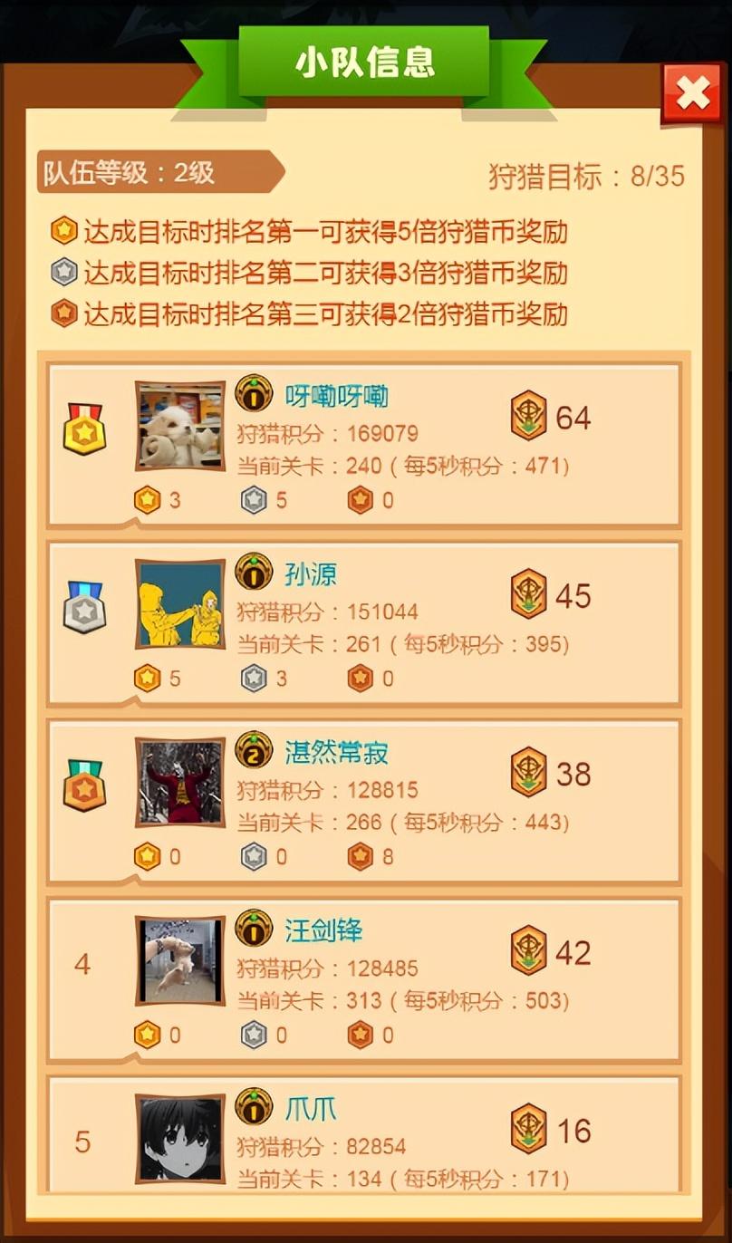 能够在小队信息中查看咱们积分排名。优先完成目标且排在前三者。可依次获得相应的积分翻倍奖励。当前三完成目标任务之后,后者再夺取前三排名的奖励无效。