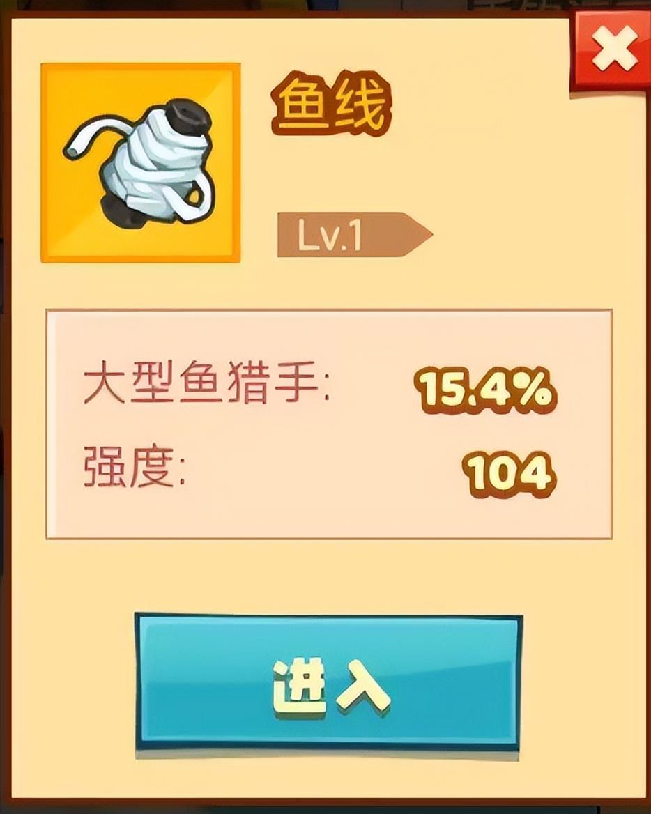 第二个就是咱们的鱼线,同样也是升级到金色品质。洗炼出大型鱼猎手增加属性。