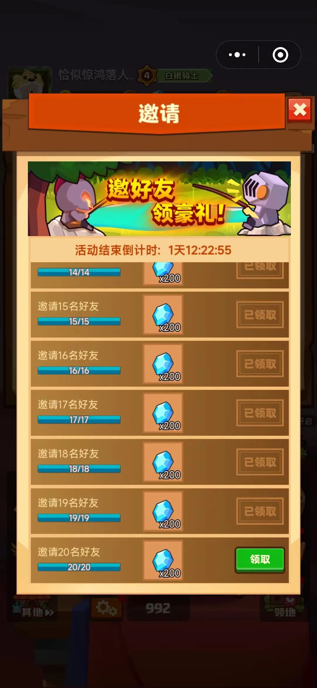 对于大家来说二十个小伙伴可能轻而易举,对小编来说这二十个邀请可谓是煞费苦心了。好不容易才完成了最后一个。然后咱们现在来说这些钻石咱们应该如何使用吧。因为钻石能够使用的范围还是比较广的。但我们让利益最大化才能继续保持。