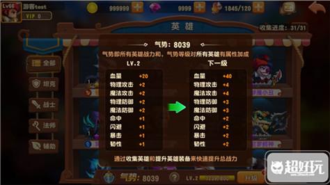 4、 提升气势等级,气势等级靠所有英雄总战力提升,气势等级的提升会提升所有英雄属性。