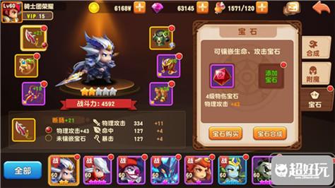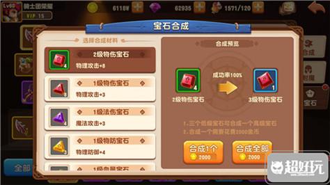 3颗同种类低等级宝石可以合成高等级宝石,宝石合成需要消耗少量金币,宝石等级提升后,属性大幅提升。