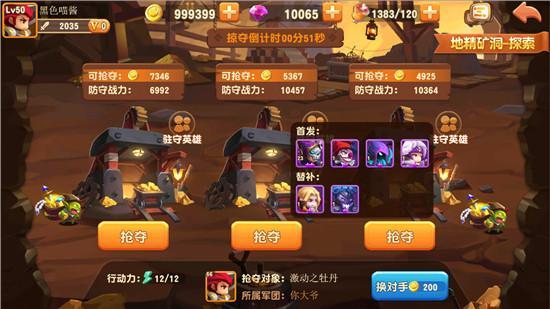 4、可以掠夺抢夺别人的矿场,消灭其某个矿场中驻守的所有英雄,获取该矿场的资源,掠夺战斗无论失败还是成功都消耗行动值,行动值会自动缓慢回复。