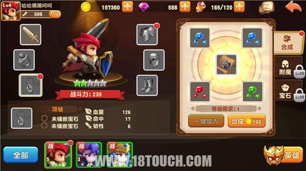 相比大魔王得天独厚的优势,被厂商欺骗、被女神魅惑却不能开挂的骑士团各位,只有对角色不断强化才能提高战力。养成玩法和主流游戏无差,英雄、装备、符文等虽然选项较多,操作起来略微繁琐,所幸上手难度极低。且游戏内快捷设置便利,点击缺少的材料可以快速进入相应场所获取。