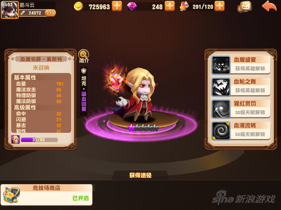 血腥伯爵莱斯特,吸血恢复型坦克。这是许多玩家除了鳄鱼之外,另一个喜欢培养的坦克英雄了,技能方面,严格意义上来说,要撑到能放技能的时候,伯爵的作用就可以展现出现了,毕竟回血是多么的强势。在夺宝的时候携带伯爵,可以说是一大乐事。获取方面,竞技场英雄,和小丑一样共用竞技点购买,平民玩家最好在两者中选择一个,以防造成两者都不是很强势。