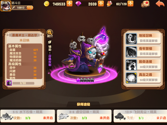 控制系召唤师,相对于他的自身回血而言,小编更看重他的控制技能,无论是推图,PK还是BOSS战,一旦控制系发威,一波精妙的输出就会出现,适合放在边路位置行动。80个碎片获得,入手难度较大,十连抽是快速得到他的好办法。