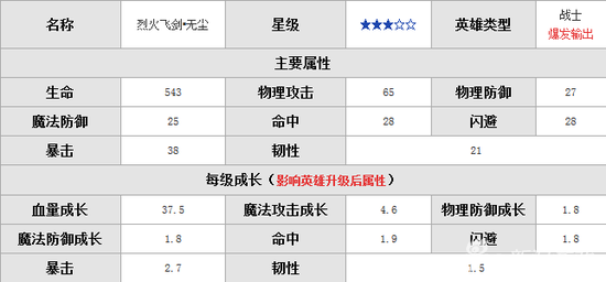 烈火飞剑无尘,中程战士,爆发输出型,任何站在前方的敌人都将成为剑下亡魂。伊尔大陆的东方,是延绵千万里的黑云山脉,黑云山脉南部的乌云峰,环境险恶但是却有众多恐怖魔兽集结,被称为死亡禁地,数千年前,大贤者还没有来到伊尔大陆散播文明,就有一批自称为"武者"的人不知从何处来到了黑云山脉的乌云峰,他们很强大,在乌云峰狩猎魔兽,自给自足,却从不走出黑云山脉的范围。