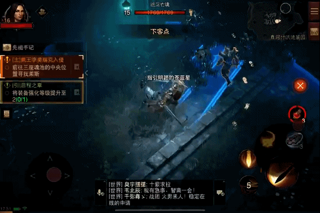 不过相比画面风格和氛围塑造上的还原,“把暗黑做成一款能多人组队的手机游戏”带来的感觉,可能会让一些人觉得有点陌生。第一次见到凯恩交了剧情任务之后,游戏就正式进入了“有城镇、有野外”的多人模式,会不时有其他玩家从你身边跑过,野外杀精英怪的时候遇到路人,系统也会“贴心”地提示问你要不要组队一起。《不朽》从这里开始呈现出一些MMO的面貌。