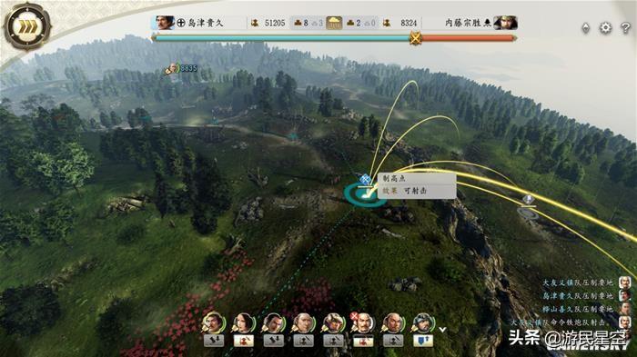 战场中可以通行的区域,被抽象成为了几条路线,而玩家很快就会发现,合战的实质,实际上是像某款P社游戏那样的“填线”。这是因为理想状态下,玩家至少要为每条战线都分配一支军队,一旦有战线无人把守,就很可能会被敌方趁虚而入,从小路绕道前后夹击我方部队,甚至是一路长驱直入袭击到我方的本阵。