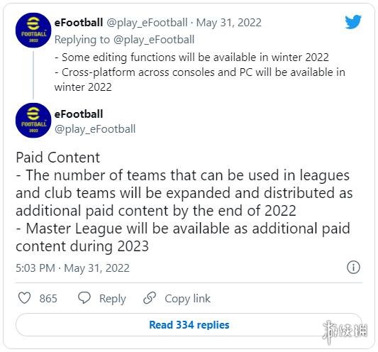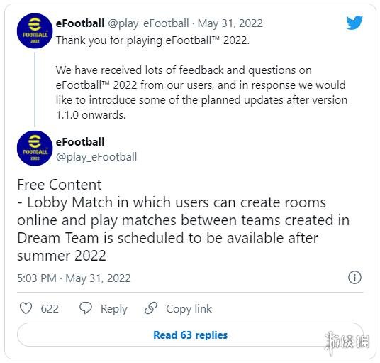 科乐美的足球游戏《eFootball》——也就是《实况足球2022》——首发暴死,但官方此后对游戏进行了更新,今年早些时候也发布了完整的《实况足球2022》1.0版本游戏,而昨天,官方又发布了推文,透露了这款游戏未来的更新计划,一起来了解下。