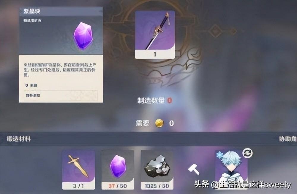 紫晶块在平时除了可以锻造魔矿,还可以用来锻造拥有稻妻特殊特点的五把武器