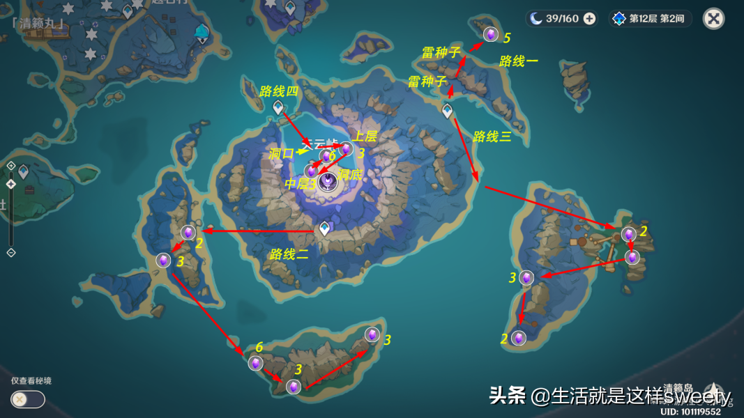 黄色数字为该点位紫晶块的数量,便于大家自己选择路线