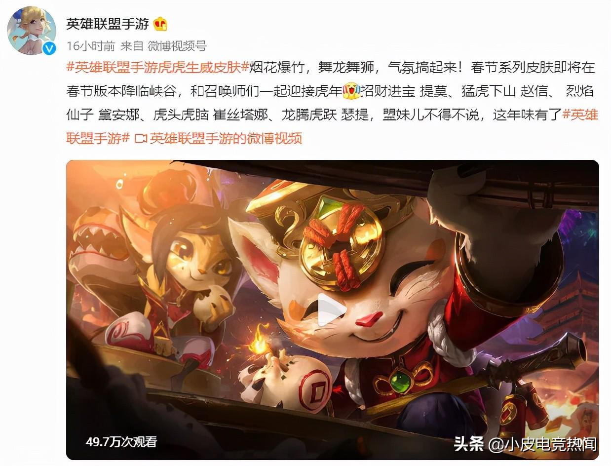 今天早上LOL官号发布了虎年系列皮肤的预告,我毫无波澜。没想到过了一会儿手游账号也同步更新,并附带了每个皮肤的出场动画及局内表现,其中还有个重量级人物!