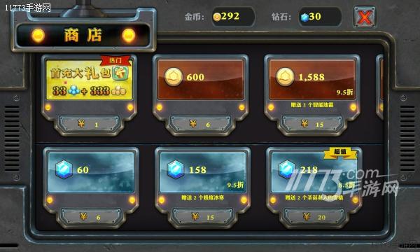 《坚守阵地》中只有几张地图可供选择,而部分更新地图都需要付费才能体验。《坚守阵地2》中也设置了需要金币购买的防御塔(关卡),但大家不用担心,这里的金币都是在游戏中获得的,没有付费项目,这应该是玩家们都喜闻乐见的新设置。 这里的金币还可以用来购买多种道具,这些道具有不同功效,可以让游戏过程更精彩。为了能体验不同道具的功效,努力赚钱吧!