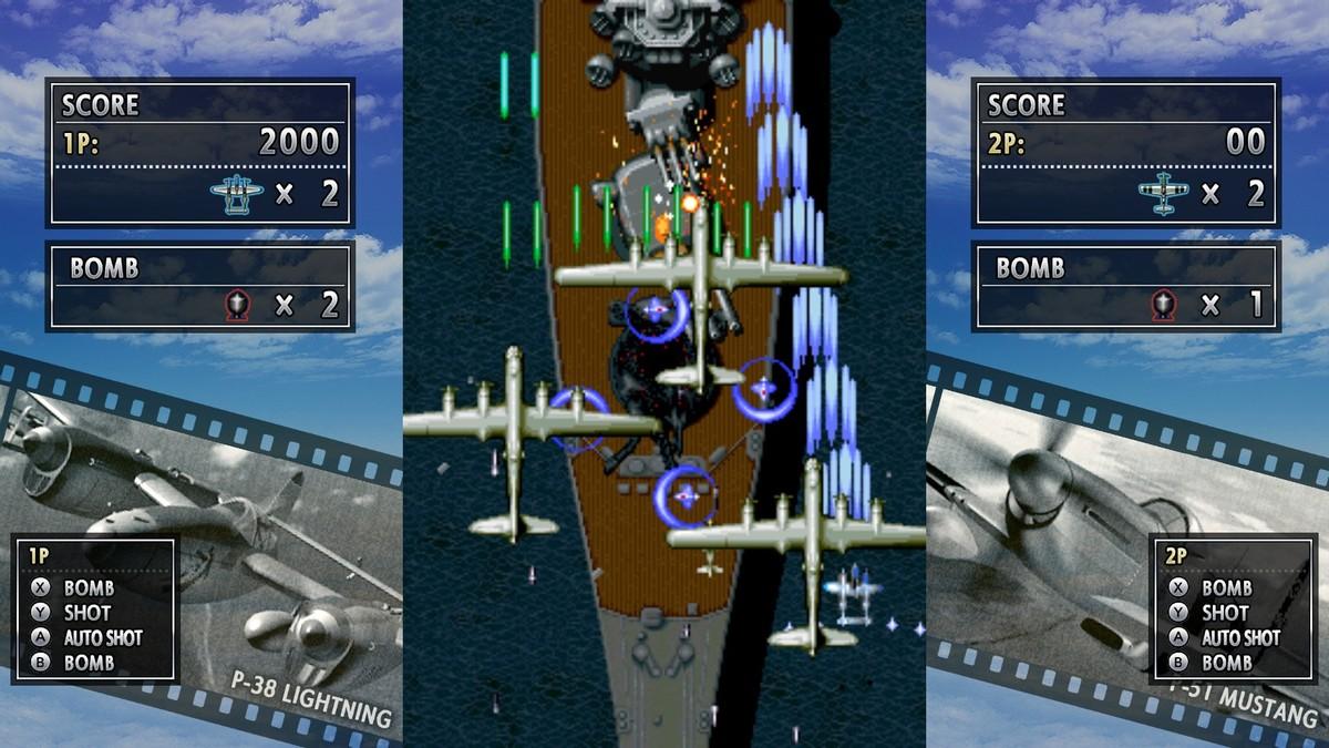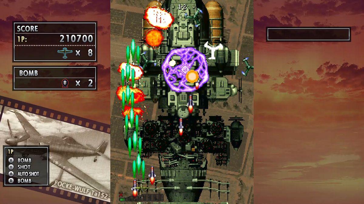 《打击者1945》玩家操作的飞机都是真实造型,不仅有P51野马、喷火式、BF109这种产量数万架的经典,也有震电式这种实验机,玩家代入感极强,七级难度、八个关卡、两周目保证了游戏内容的充实。游戏上手简单且有深度,当时在国内街机厅是必备游戏之一,1996年本作移植到索尼PS和世嘉SS,可以说是彩京射击游戏的代名词。